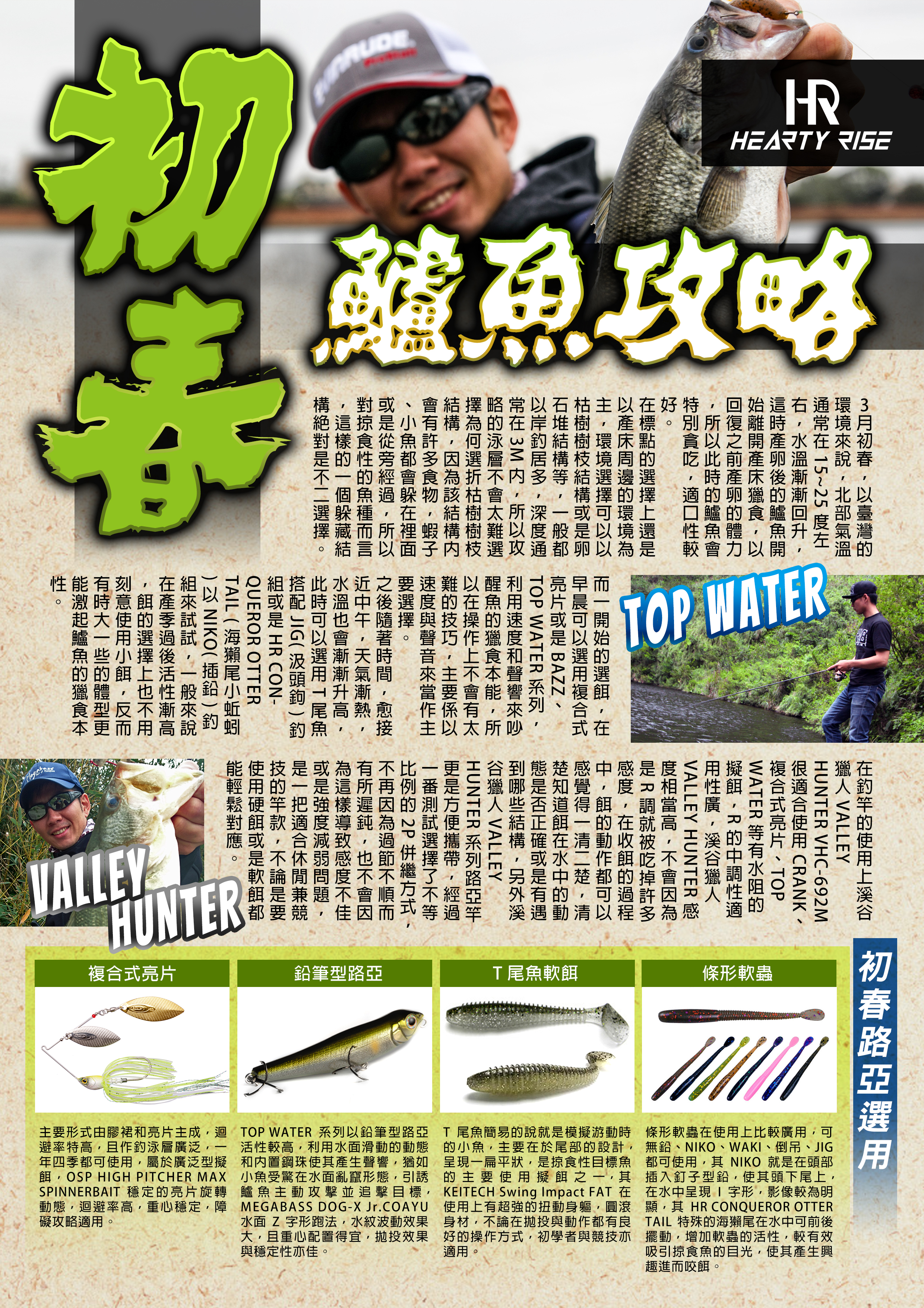 而一開始的選餌,在早晨可以選用複合式亮片或是BAZZ、TOP WATER系列,利用速度和聲響來吵醒魚的獵食本能,所以在操作上不會有太難的技巧,主要係以速度與聲音來當作主要選擇。