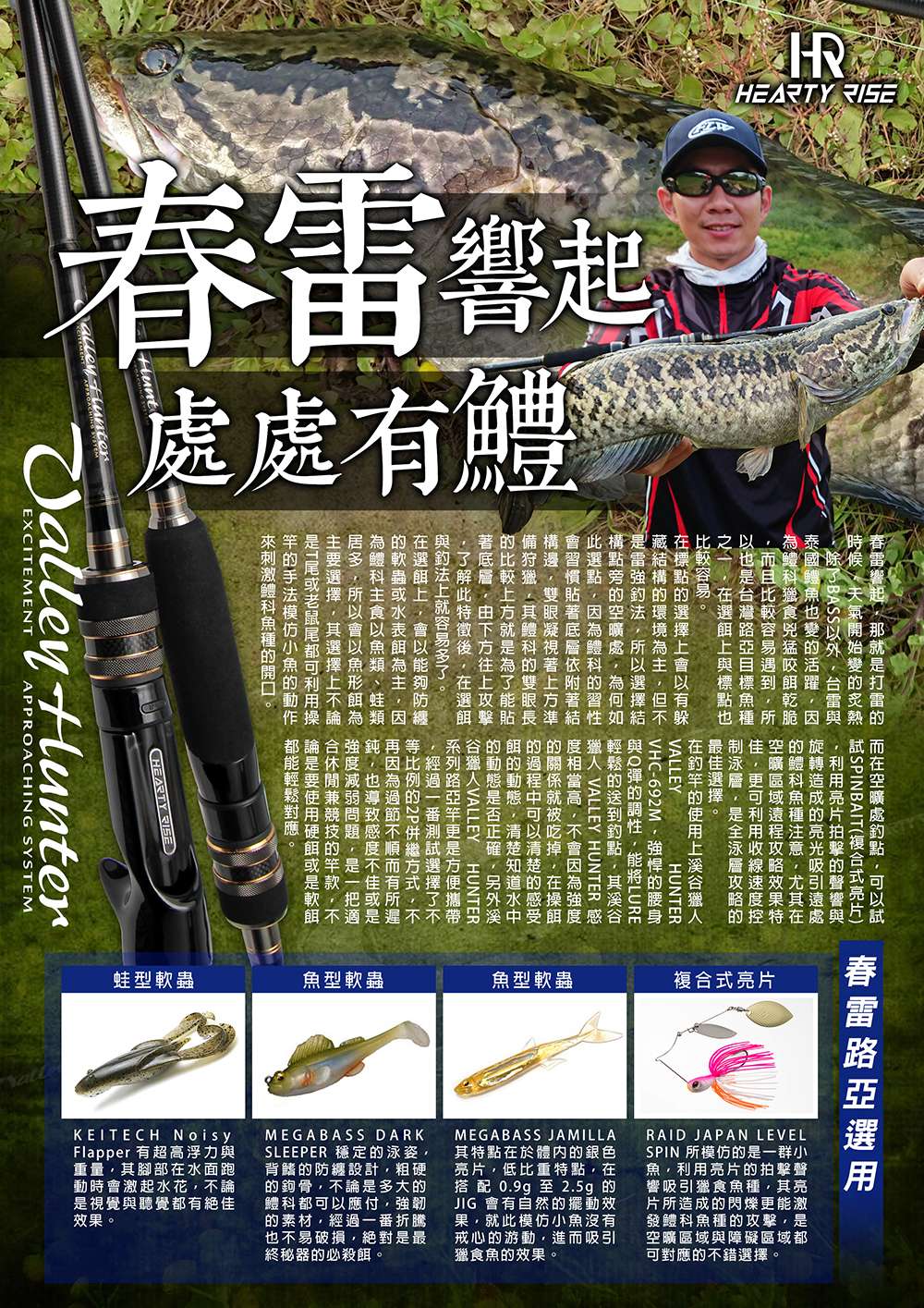 春雷響起,那就是打雷的時候,天氣開始變的炙熱,除了BASS以外,台雷與泰國鱧魚也變的活躍,因為鱧科獵食兇猛咬餌乾脆,而且比較容易遇到,所以也是台灣路亞目標魚種之一,在選餌上與標點也比較容易。