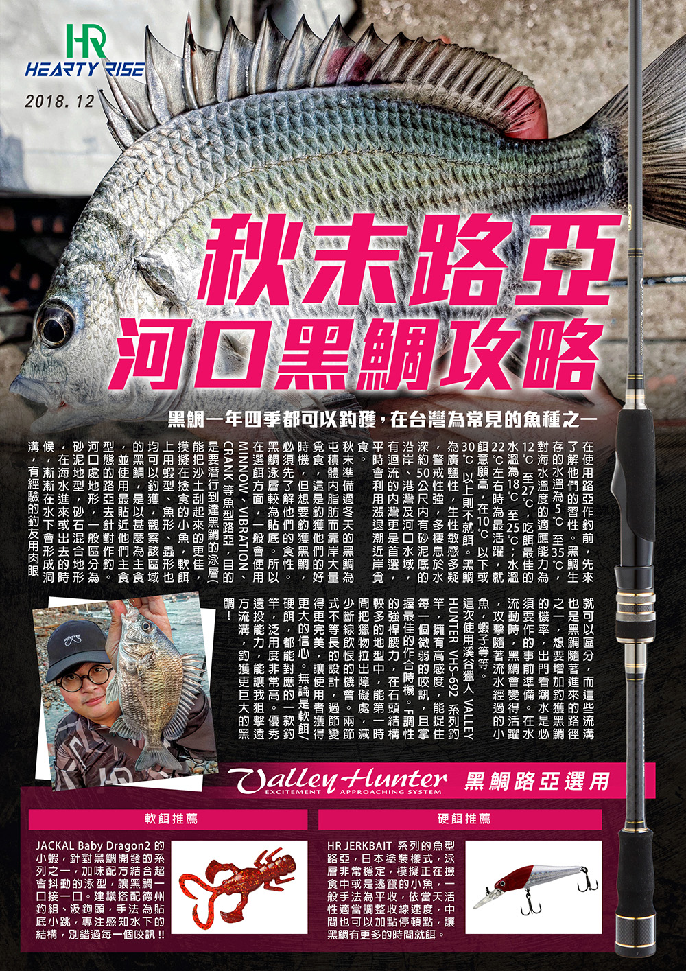 硬餌推薦 HR JERKBAIT 系列的魚型路亞,日本塗裝樣式,泳層非常穩定,模擬正在撿食中或是逃竄的小魚,一般手法為平收,依當天活性適當調整收線速度,中間也可以加點停頓點,讓黑鯛有更多的時間就餌。