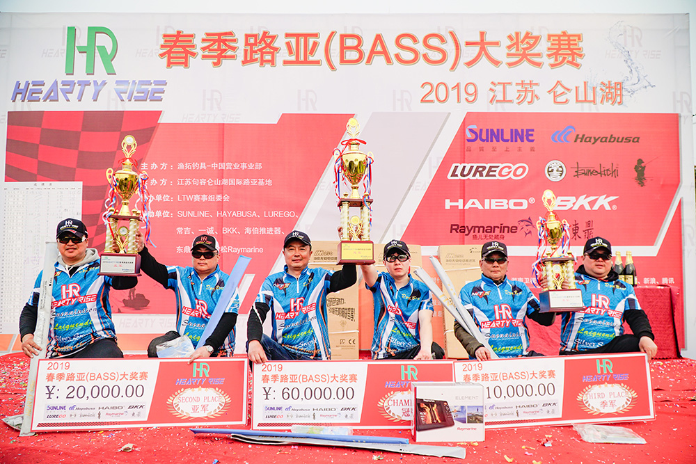 陳大龍、尹志全兩天用了9尾鱸魚,5.15公斤魚獲,成功奪得2019HEARTY RISE春季路亞(BASS)大獎賽冠軍,收穫至高榮譽的同時,還獲得6萬元獎金。