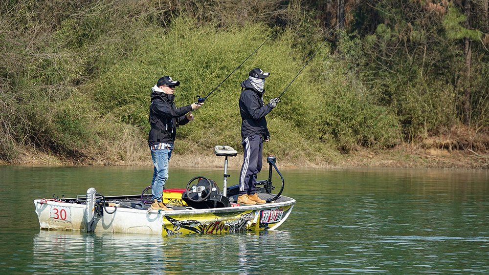 3月16日-17日,37組釣手經過兩天的激烈角逐,2019 HEARTY RISE春季路亞(BASS)大獎賽強者終出爐!一起來回顧一下比賽情況!首日賽況還算理想,有9組選手打滿,受季節影響,冷熱交替,水位上漲,標點難以掌控,魚情較差,釣手也備受煎熬!