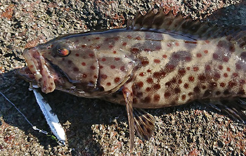 夏日海水魚種“石斑”,石斑是海水常見魚種,有許多分類,最常見的就是土斑還有玳瑁石斑,使用 SLOW DEEP II 20g 小鐵板從底層抽跳,就能激起石斑的咬餌反應,另外配上溪谷獵人2代PE線,緊密的編織,絕佳的切水性與操作性,能使鐵板操作出絕佳的動作,且耐磨性好,絕對是海水岸拋的絕佳選擇。
