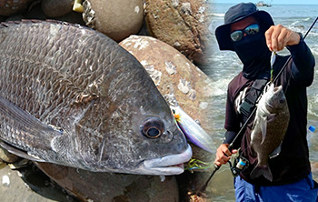 黑鯛靠岸,夏日西海岸硬餌岸拋,使用溪谷獵人HUMP MINNOW 55S,S屬性固定重心,在白浪滔滔的場域也能有穩定泳姿,使用0.6號溪谷獵人2代PE線配上2.5號溪谷獵人碳纖前導,水深1.5m內的岸拋場域絕對適用。
