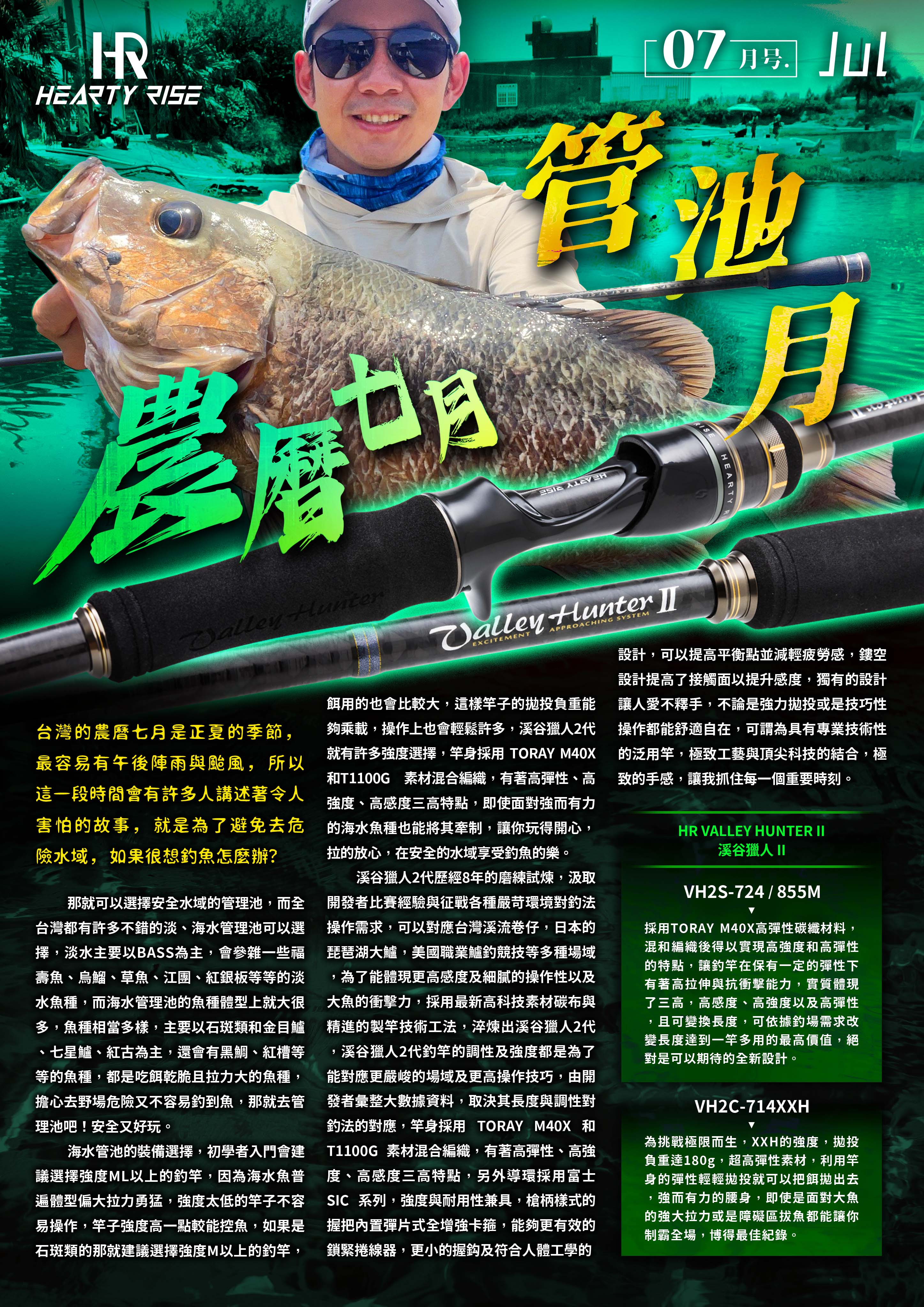 溪谷獵人 2 代歷經 8 年的磨練試煉,汲取開發者比賽經驗與征戰各種嚴苛環境對釣法操作需求,可以對應台灣溪流卷仔,日本的琵琶湖大鱸,美國職業鱸釣競技等多種場域,為了能體現更高感度及細膩的操作性以及大魚的衝擊力,採用最新高科技素材碳布與精進的製竿技術工法,淬煉出溪谷獵人 2 代,溪谷獵人 2 代釣竿的調性及強度都是為了能對應更嚴峻的場域及更高操作技巧,由開發者彙整大數據資料,取決其長度與調性對釣法的對應,竿身採用 TORAY M40X 和 T1100G 素材混合編織,有著高彈性、高強度、高感度三高特點,另外導環採用富士 SIC 系列,強度與耐用性兼具,槍柄樣式的握把內置彈片式全增強卡箍,能夠更有效的鎖緊捲線器,更小的握鈎及符合人體工學的設計,可以提高平衡點並減輕疲勞感,鏤空設計提高了接觸面以提升感度,獨有的設計讓人愛不釋手,不論是強力拋投或是技巧性操作都能舒適自在,可謂為具有專業技術性的泛用竿,極致工藝與頂尖科技的結合,極致的手感,讓我抓住每一個重要時刻。