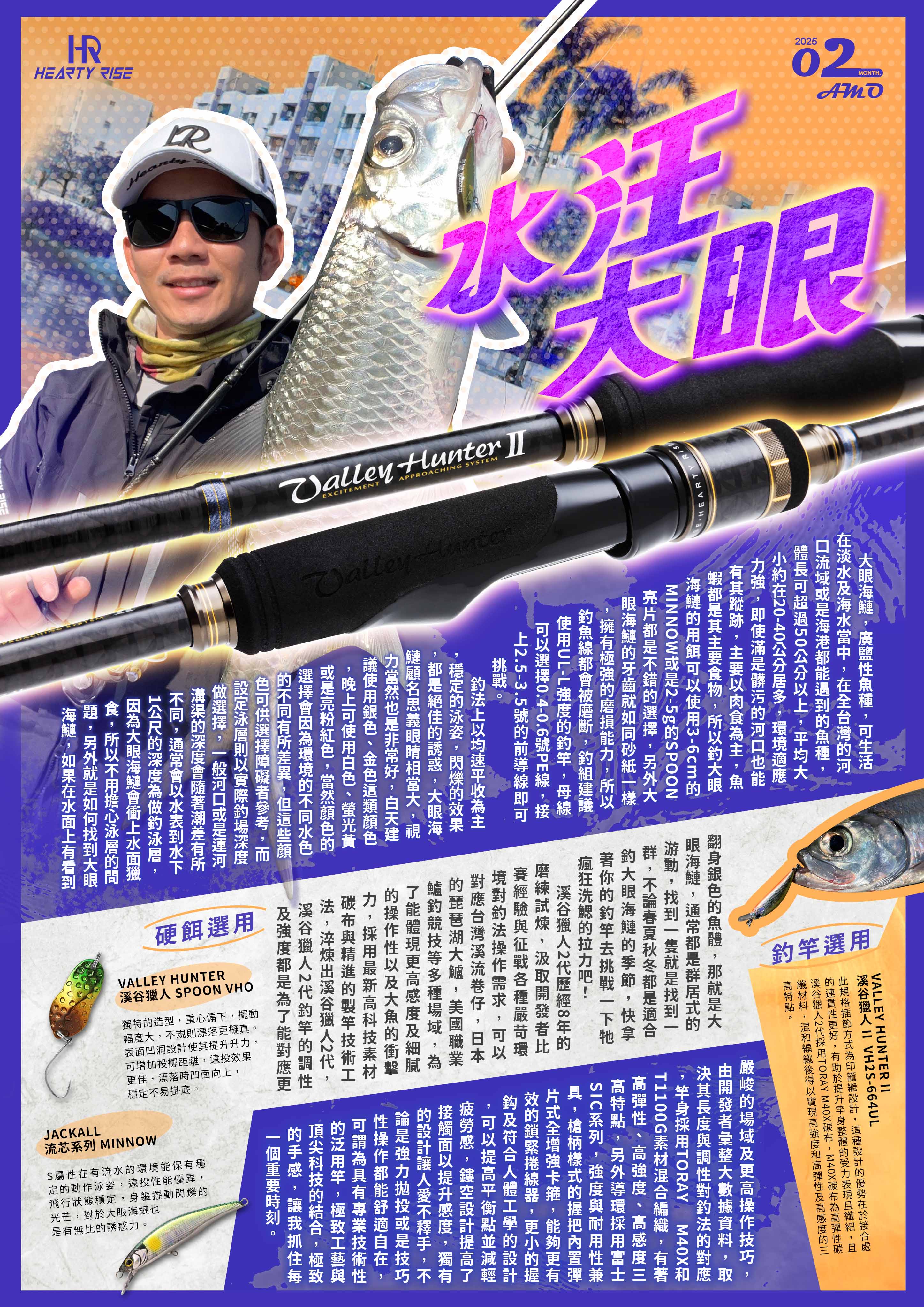 溪谷獵人2代歷經8年的磨練試煉,汲取開發者比賽經驗與征戰各種嚴苛環境對釣法操作需求,可以對應台灣溪流卷仔,日本的琵琶湖大鱸,美國職業鱸釣競技等多種場域,為了能體現更高感度及細膩的操作性以及大魚的衝擊力,採用最新高科技素材碳布與精進的製竿技術工法,淬煉出溪谷獵人2代,溪谷獵人2代釣竿的調性及強度都是為了能對應更嚴峻的場域及更高操作技巧,由開發者彙整大數據資料,取決其長度與調性對釣法的對應,竿身採用 TORAY M40X 和 T1100G 素材混合編織,有著高彈性、高強度、高感度三高特點,另外導環採用富士 SIC 系列,強度與耐用性兼具,槍柄樣式的握把內置彈片式全增強卡箍,能夠更有效的鎖緊捲線器,更小的握鈎及符合人體工學的設計,可以提高平衡點並減輕疲勞感,鏤空設計提高了接觸面以提升感度,獨有的設計讓人愛不釋手,不論是強力拋投或是技巧性操作都能舒適自在,可謂為具有專業技術性的泛用竿,極致工藝與頂尖科技的結合,極致的手感,讓我抓住每一個重要時刻。