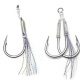 Using higher carbon steel material makes the hook be ultra-strong and ultra-light. With Nickel Silver Black (NSB) finish protecting it from saltwater corrosion. The design of a double hook can stabilize the swim form of the jig and increase the hit rate. The design of a single hook can increase the flexibility of JIGGING and acquire the fish's attention. It can pierce into the fish mouth in one slight touch with its keen hook point.