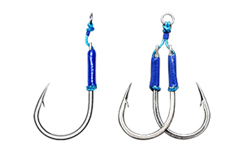 Using higher carbon steel material makes the hook be ultra-strong and ultra-light. With Nickel Silver Black (NSB) finish protecting it from saltwater corrosion. The design of a double hook can stabilize the swim form of the jig and increase the hit rate. The design of a single hook can increase the flexibility of JIGGING and acquire the fish's attention. It can pierce into the fish mouth in one slight touch with its keen hook point.