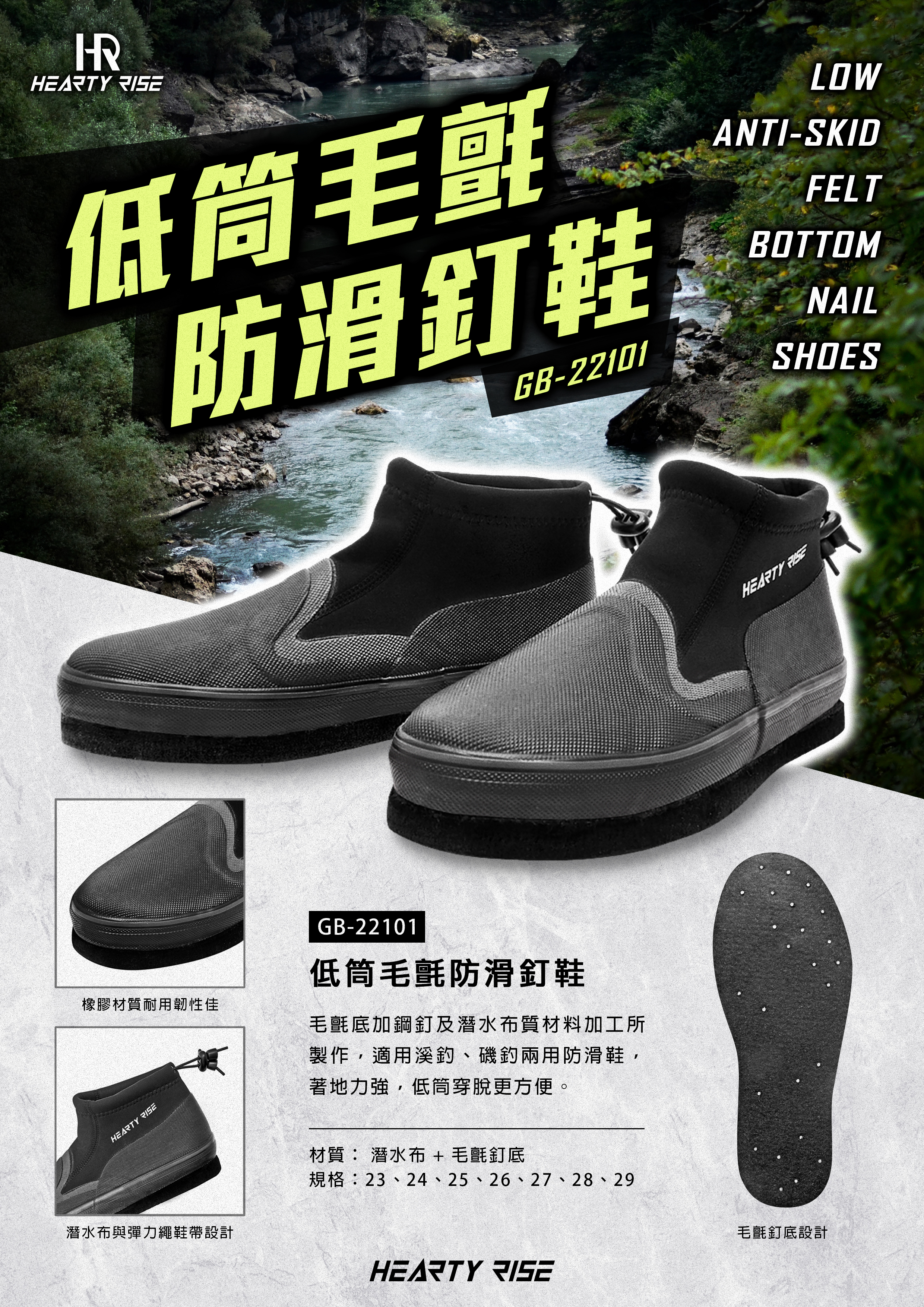 HR LOW ANTI-SKID FELT BOTTOM NAIL SHOES 低筒毛氈防滑釘鞋 GB-22101 A4