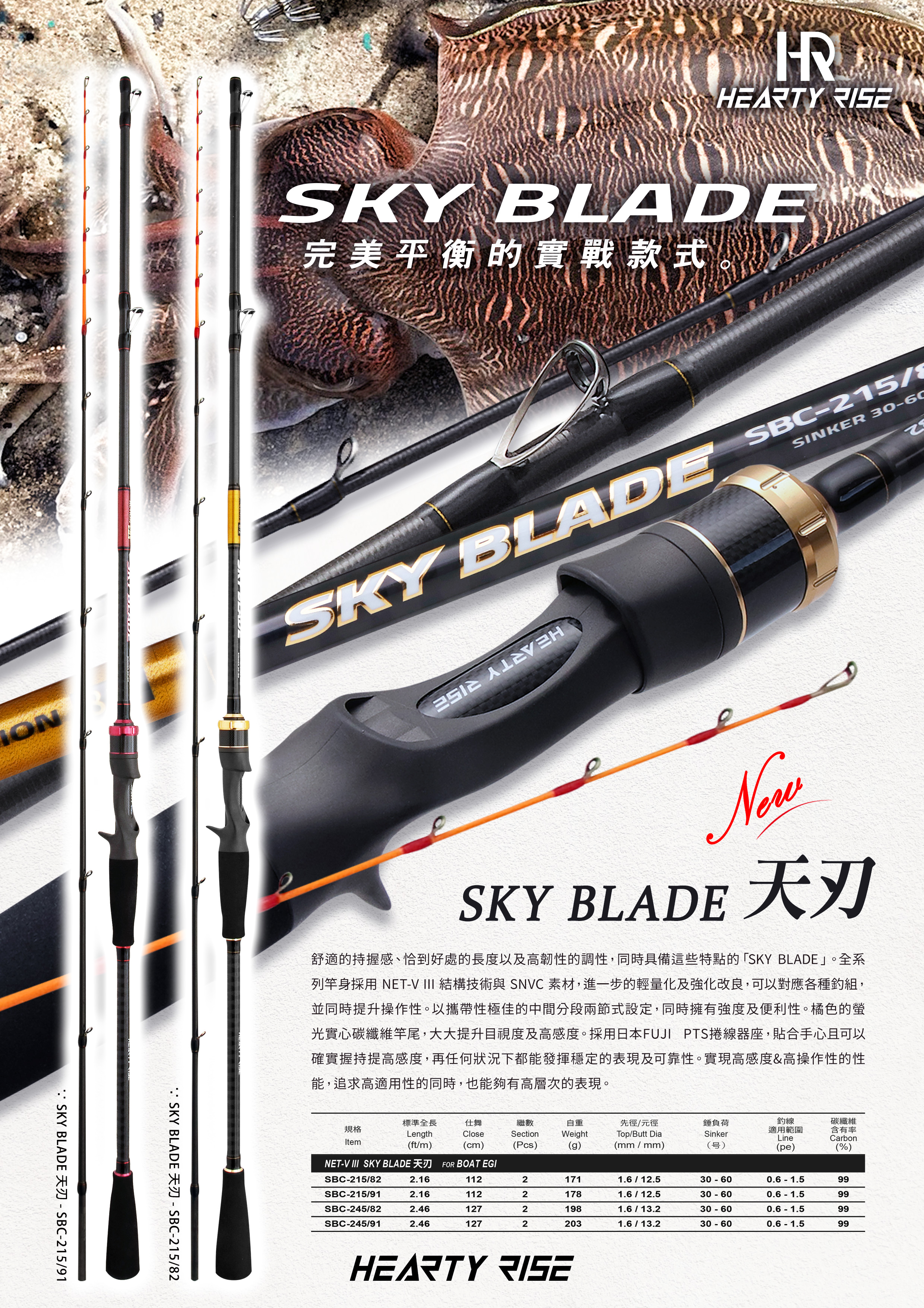 SKY BLADE provides you great comfort ness while you are holding it. The length and tough action are completely perfect. The whole rod blank is made of NET-V III technology and SNVC material. It has improved by making it lighter and more powerful and is suitable for different rigs the meantime elevates the operability. The two-section design provides great portability. The orange glowing carbon tip can provide great vision and sensitiveness. The FUJI PTS reel seat provides great sensitiveness which you can rely on it during any circumstances. The great sensitiveness and operability can provide good performance and great applicability.
