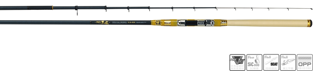 採用人造藤纏繞的手把,具有一流的手感,復刻造型,勾勒出黑鯛釣法的精髓,戰鬥感十足的鐳刻金屬裝飾,流露出不凡的品味。日本進口素材搭配HR獨特的工法,使竿身不經研磨與烤漆,就能展現碳纖素材彈性,絕佳的防刮與潑水效果,是你成為黑鯛師最佳的利器。