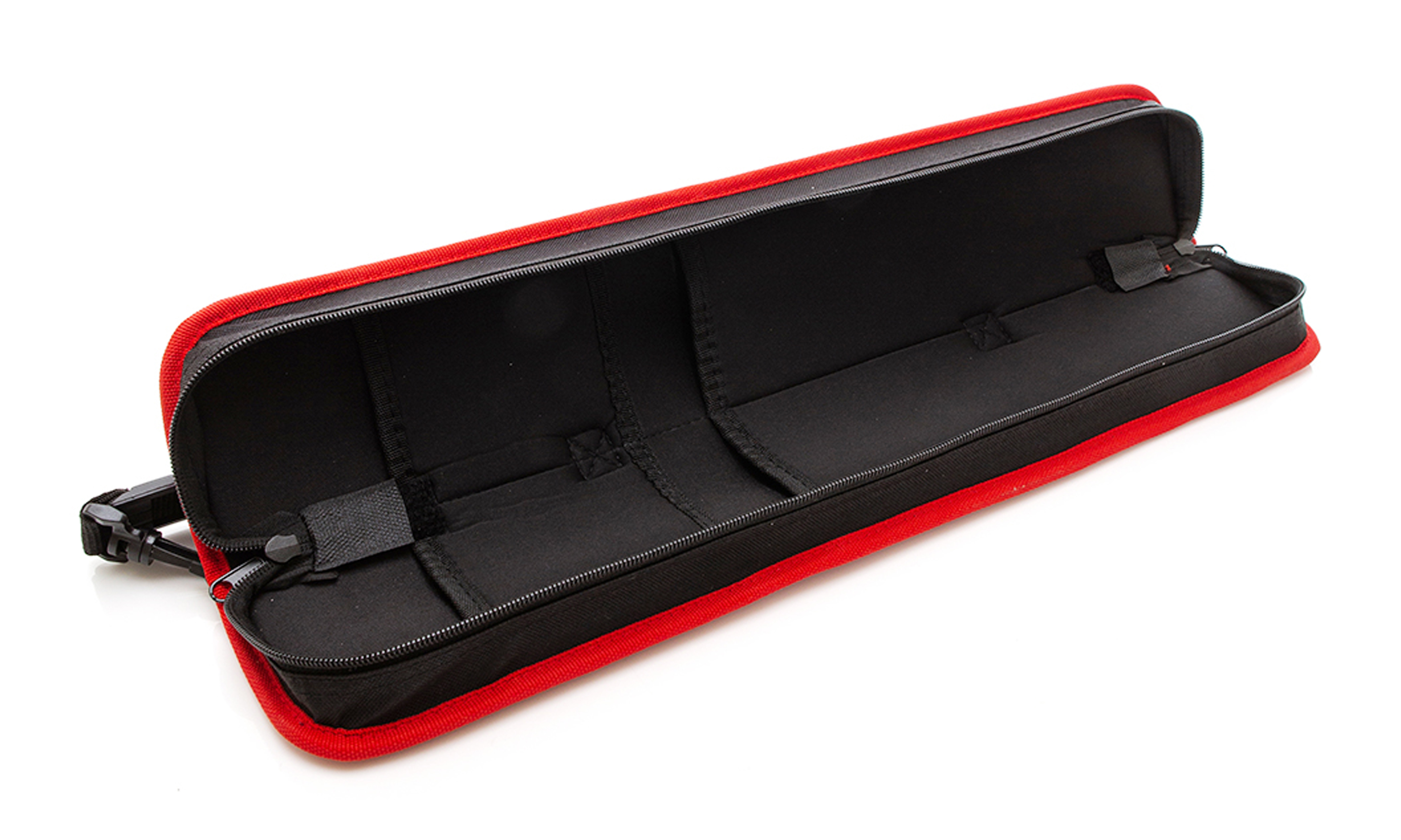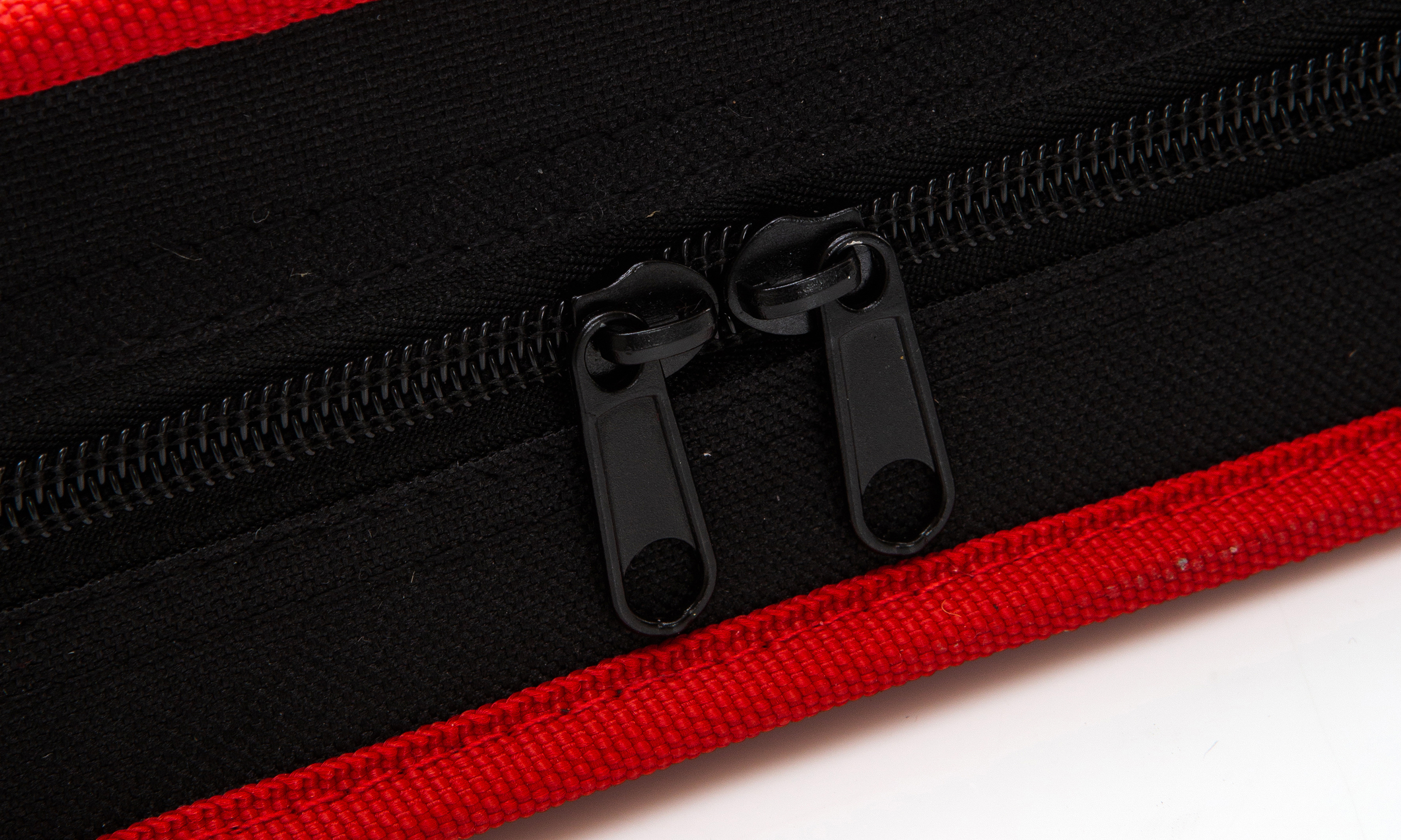 外表採用簡約大方設計,搭配雙開式拉鍊設計,使用方便。內部採用泡棉布,防止釣竿震動受損。內部雙邊皆有一大一小口袋設計,可放置釣竿及小配件。竿袋背面設有提把設計,並搭配可拆式背帶,攜帶更方便。