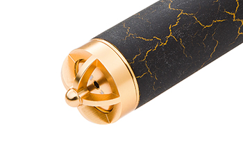 整體竿身使用日本進口高密度碳纖素材,及NET-V II工法製造,強度提升15%。把節及竿口採用頂級四軸布增強,握把採用裂紋漆裝飾,華麗而耐磨。該款釣竿,腰身強韌,便於輕鬆控魚。創新的錐度設計使釣竿重心點後移,久持而不累。整支釣竿以金色及黑色為主調,搭配皇冠意義的創新金屬件配置,高貴又不失華麗,更適合尊貴的您。