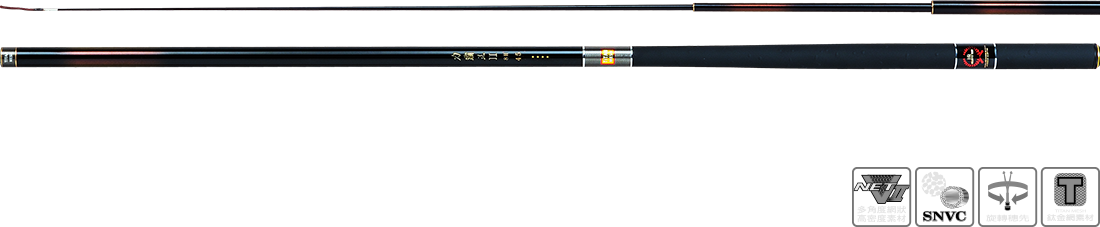 TITAN MESH超輕量、超高強度鈦金網,秉持SNVC骨幹及NET-V II素材,在釣竿口部施以超輕量,超高強度鈦金屬加強,開創「輕量」、「力道」、「超高強度」,使操作更加得心應手。超厚實的管壁,突顯出本竿超級的調性,是一支針對大型賽事所設計的完全戰鬥版釣竿,超強有力的腰身,配合輕量化的竿身,操竿有如行雲流水,揚竿作合到引拔起魚,一切都流暢無礙,減少博魚時間,快速增加魚獲,加速積分重量。