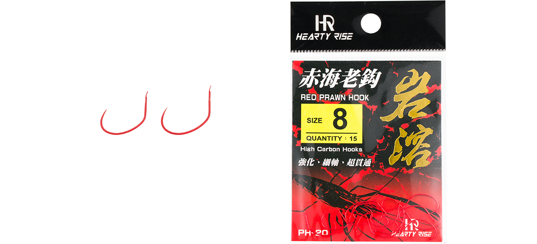 岩溶蝦鈎是採用最新改良鈎型設計,專門為了釣蝦而誕生!特殊加工處理紅色電鍍,鈎柄短軸及特殊鈎身弧度製作,再搭配細長尖銳的鈎尖,此設計可讓蝦子輕易的上鈎,就算蝦子極力的掙脫也不易造成脫鈎情形發生,是一款最新研發而成的蝦鈎。