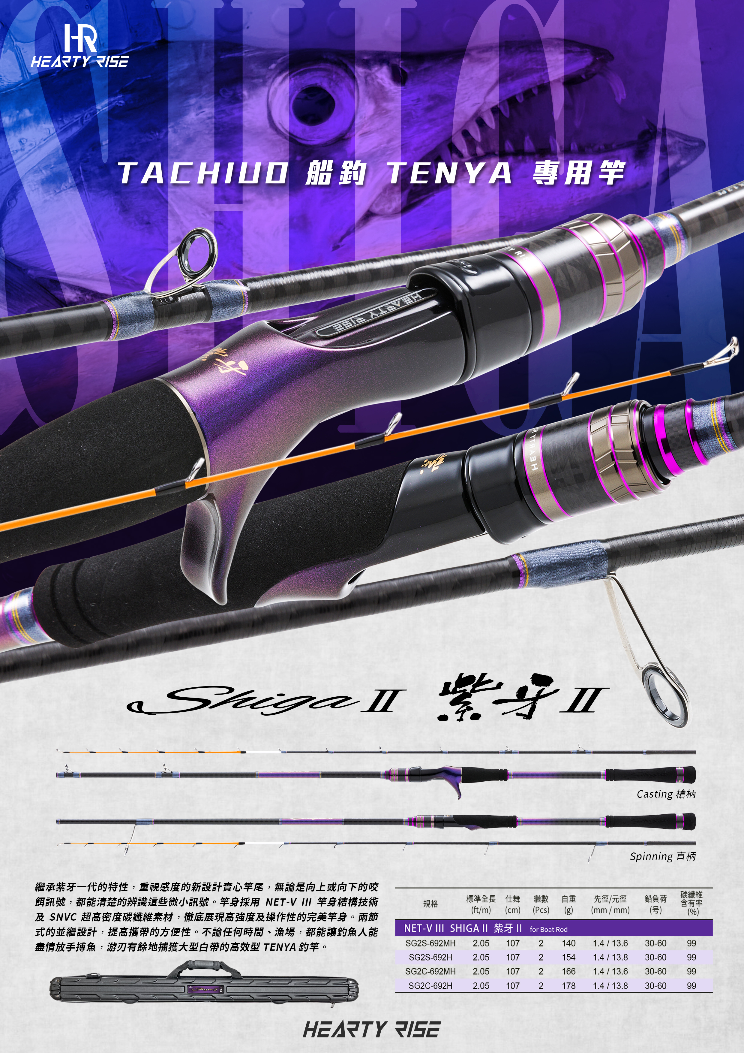 不論任何時間、漁場,都能讓釣魚人能盡情放手搏魚,游刃有餘地捕獲大型白帶的高效型 TENYA 釣竿。