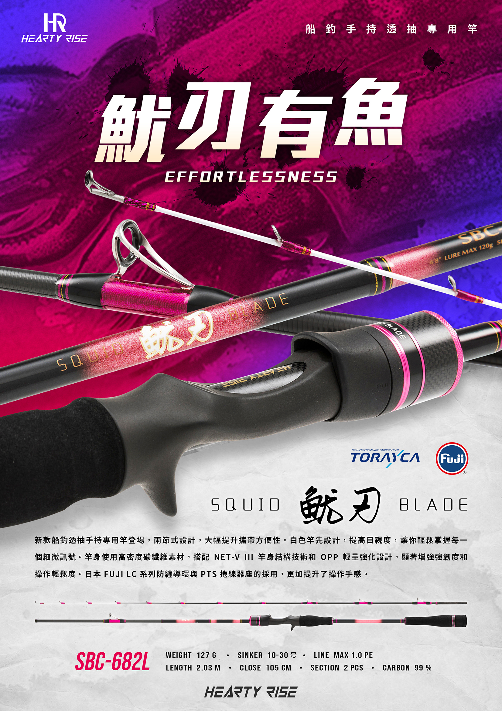 新款船釣透抽手持專用竿登場,兩節式設計,大幅提升攜帶方便性。