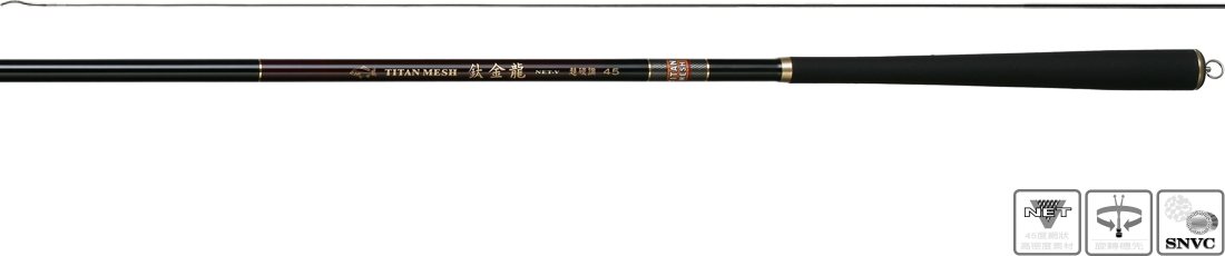 自從NET-V鈦金龍超硬調(一般把)推出以來,其優秀表現受到廣大釣友的熱愛與肯定,HR再接再厲,推出NET-VⅡ鈦金龍超硬調橡膠握把,以及極硬調兩款新竿,帶給您更高層次的機能表現。 竿身的柔韌感,讓您充分享受溜魚的快感,雅緻的塗裝裝配著鈦金屬材質裝飾,每款新竿都附有EVA及鋁質下栓,便利性十足,更能讓重視韻味與品味的您激賞,讓您輕易成為池畔所注目的焦點。