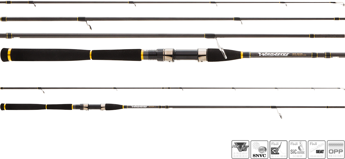 全機種搭載「NET-V II 結構工法」、「SNVC 高密碳纖素材」及「OPP 輕量 抗刮 防潑水塗裝」,此外採用 FUJI 捲線器座及 KW 系列 SIC 導環,實現極佳操作性能及輕量化。不僅是鐵板、米諾或是波趴等等拋投作釣都能盡情享受。